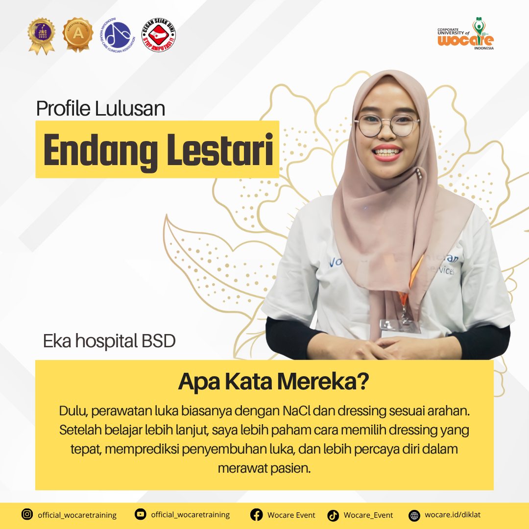 Pelatihan ini berfokus pada prinsip dasar prosedur perawatan luka modern, cocok untuk kamu yang ingin memulai praktik mandiri perawatan luka, tapi cuma punya waktu sedikit. Setelah pelatihan ini peserta mampu: